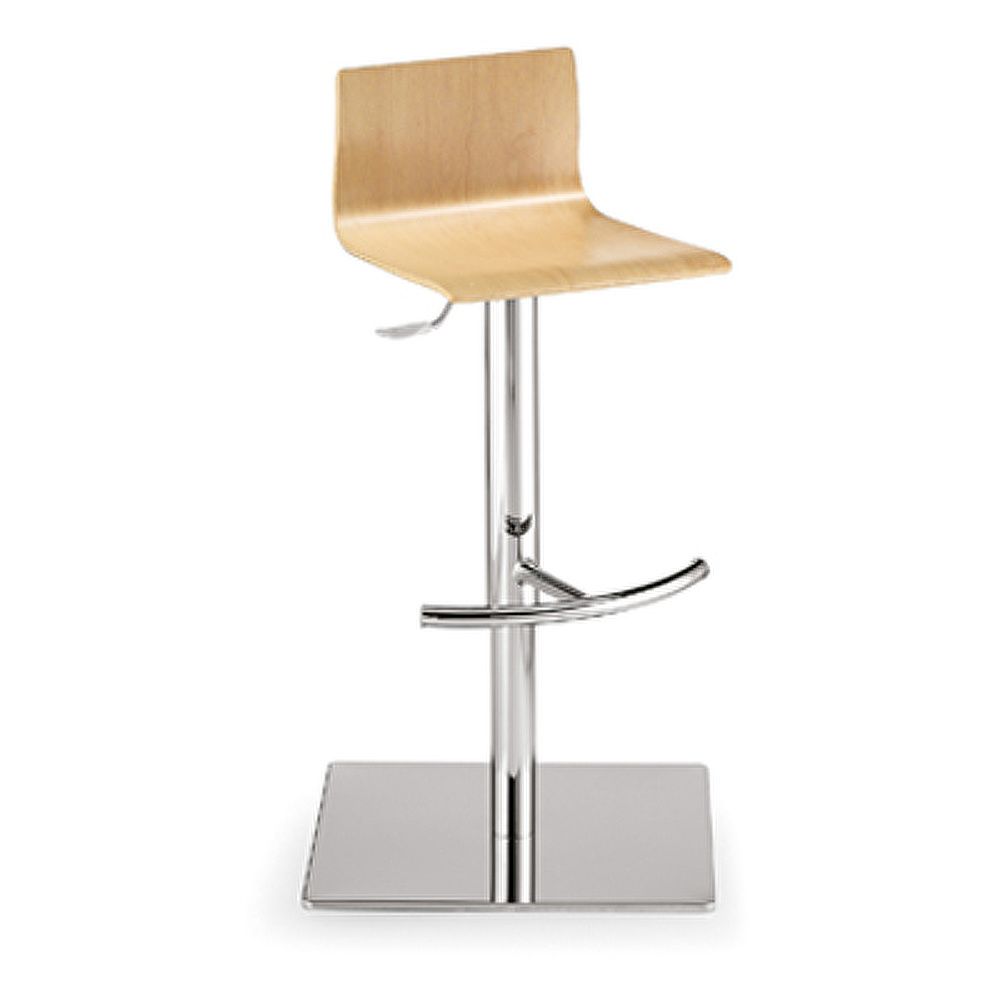 It has a chromium-plated metal structure and a comfortable footrest. The broad square base gives it great stability.