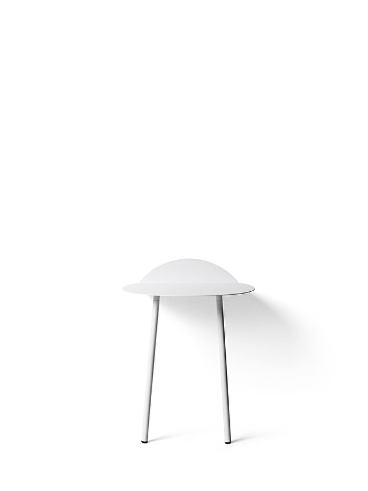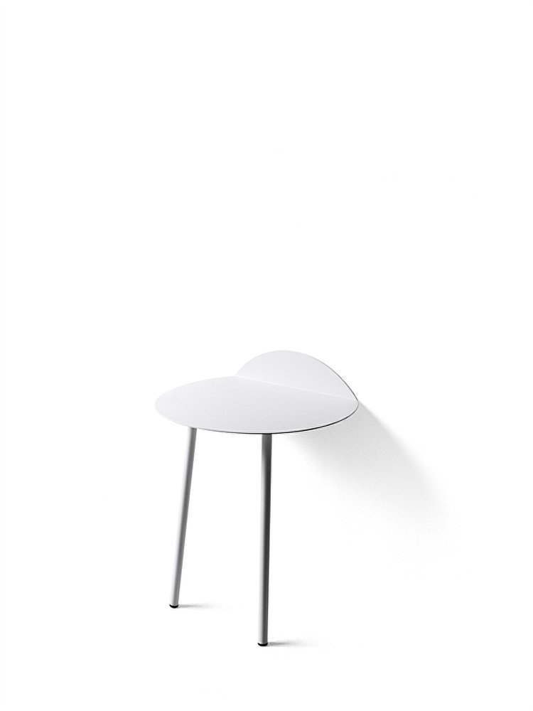 An unusual side table, the minimalistic Yeh Wall Table stands on two legs – balanced by a section of thin tabletop that bends upwards at a 90-degree angle against the wall for support. The two slender tubular legs are slightly angled to provide additional stability. Use as a side-table for books, plants or a lamp. Lightweight and portable, the Yeh Table is a perfect for homes with limited space. Available in two sizes.